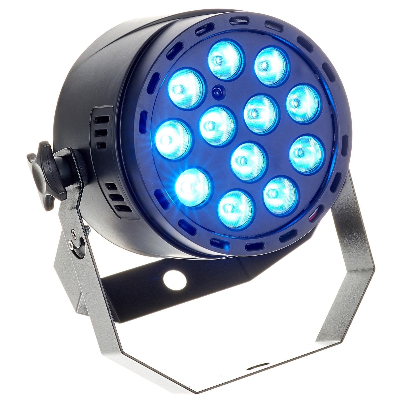 Le bundle LED Pot 12x1W QCL RGB WW de Fun Generation est un ensemble de projecteurs de type PAR (Parabolic Aluminized Reflector – réflecteur parabolique aluminé). On l'utilisera principalement pour ajouter des petites touches lumineuses et décoratives. Les multiples petites LED des quatre spots produisent un faisceau plutôt étroit. En termes de teintes, on dispose d'un assortiment de couleurs RGB ainsi que de lumière blanche, et le tout peut être piloté selon plusieurs modes différents. Avec toutes ces fonctionnalités, le projecteur de type PAR présente un rapport qualité-prix très intéressant, sachant qu'aucun matériel supplémentaire ne sera nécessaire pour le piloter, toutes les commandes pouvant être déclenchées grâce aux boutons dédiés en face arrière de l'appareil. Grâce à son double arceau, celui-ci pourra non seulement être fixé sous le plafond ou à une poutrelle, mais également être simplement posé par terre pour fournir une source lumineuse à partir du sol. Enfin, le projecteur est tellement silencieux qu'il pourra même être employé pour simplement agrémenter l'éclairage de votre salon. Le bundle comporte quatre projecteurs LED ainsi qu'une télécommande et une housse de transport.