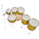 • Double support de tom avec support de cymbale intégré, monté sur une nouvelle rosace de grosse caisse à badge rond