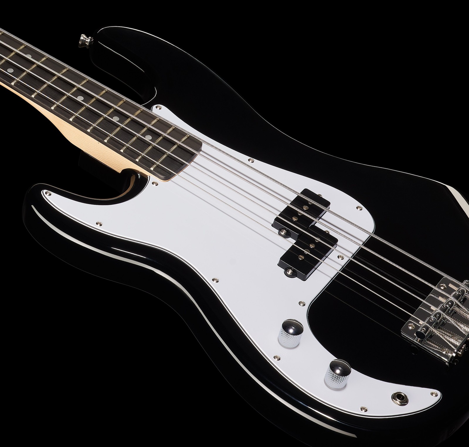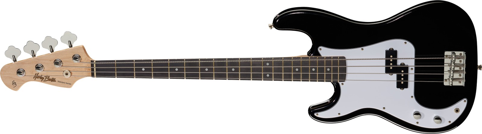 Un corps en peuplier, un manche en érable ainsi qu’une touche en amarante constituent les ingrédients de base de la Harley Benton PB-20. Tout comme l'originale, le manche vissé à boulons transmet fidèlement le rendu sonore de chaque attaque. Les 20 frettes offrent suffisamment d'espace pour tous types de lignes de basse et la largeur du sillet de 42 mm, associée au profil C du manche, facilitent le jeu et mettront immédiatement à l'aise n’importe quel instrumentaliste. Le pick-up traditionnel à bobine double ainsi que l'électronique passive, dotée d’un contrôle de volume et tonalité, ont toujours été la recette du son typique « style P », et bien entendu la PB-20 s’y conforme parfaitement. C’est ainsi que l’on écrit l’Histoire! Le son, certes, est là, mais l'apparence également tient un rôle majeur pour cet instrument. Le design, la finition, les accordeurs vintage ainsi le pickguard confèrent à la PB-20 un look authentique. La finition noire et intemporelle s'adaptera sans conditions à tous les styles de jeu.