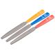 JGP Japanese Guitar Parts Double Edge Nut File Set; nut file set, type 5003, consisting of 3 high-grade files from the Japanese manufacturer UO-CHIKYU, each with two different sizes; File 4-1 (red) .016/.042; File 5-2 (blue) .026/.050; File 6-3 (yellow) .036/.055 inch; Made in Japan
