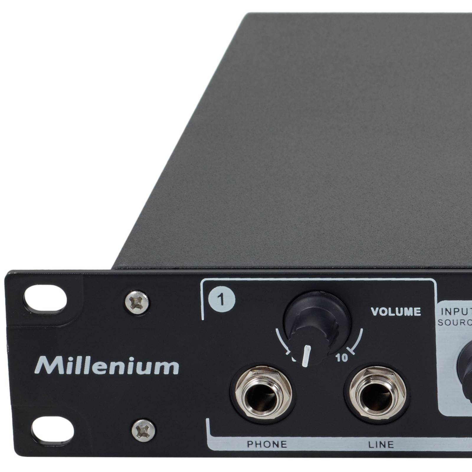 Le Millenium HP4 répond aux exigences d’un amplificateur casque de studio : il délivre un signal clair et dispose de réserves suffisantes pour alimenter tout type de casque. Certes, certains modèles haut de gamme offrent une restitution plus fine des détails sonores, mais une telle précision n’est pas toujours nécessaire pour le monitoring en enregistrement. L’essentiel est de fournir à chaque musicien un mixage individuel avec assez de puissance pour répondre aux demandes de volume les plus forts. Le HP4 remplit ce rôle avec fiabilité. Son tarif très bas ne doit pas tromper : grâce à ses nombreuses possibilités de distribution casque, on le retrouve également dans des racks de studios professionnels.