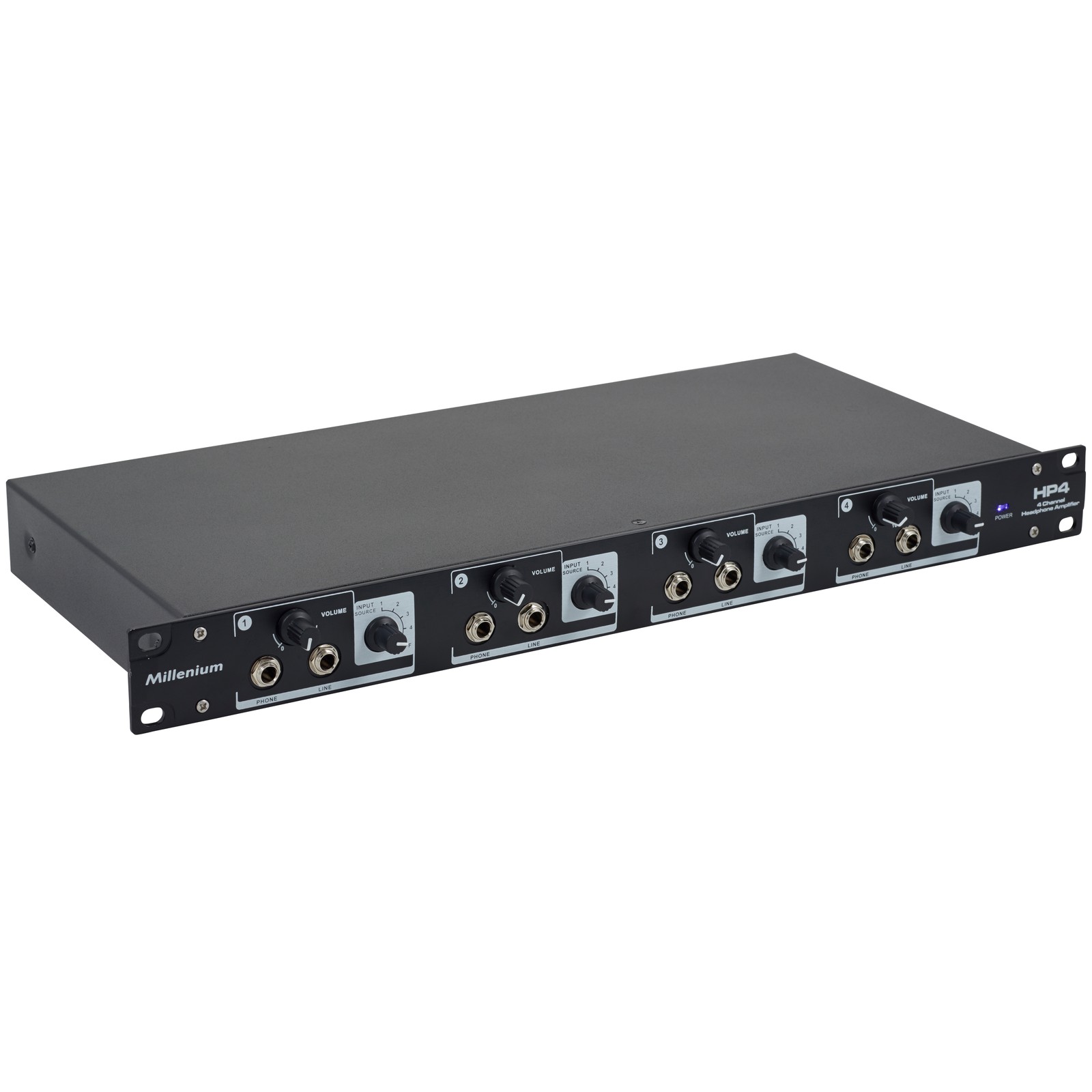 Dans un project-studio ou un home studio, un amplificateur casque tel que le Millenium HP4 est indispensable pour fournir des retours fiables aux musiciens. De plus en plus de groupes utilisent aujourd’hui des casques de monitoring – principalement des modèles intra-auriculaires – lors de concerts. Le HP4 convient parfaitement à ces situations. Conçu pour être installé en rack, à proximité de la console ou de l’interface audio, il reçoit les signaux via des câbles courts, réduisant ainsi interférences et bruit de fond. Chaque canal peut être utilisé en mono ou en stéréo selon les besoins, la prise jack « L » servant classiquement d’entrée mono.