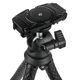 • Rotule à 360° avec inclinaison à 90° (amovible et compatible avec les trépieds via un filetage 1/4")