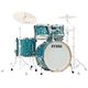 Tama Starclassic Walnut/Birch, WBR42S-TQP, Colour: Turquoise Pearl, highgloss laquered shells, material: 6mm / 4 ply birch + 2 ply walnut at toms and floortoms, 8mm / 5 ply birch + 2 ply walnut at bass drum, configuration: 22"x16" Bass Drum (with bass mount drilling), 10"x8" tom, 12"x9" tom, 16"x14" floor tom, MTH1000 double tom holder, quick lock tom bracket, die-cast hoops, Star-Cast holders, perfect ratio of walnut to birch that produced a superior quality of low-to-mid frequency warmth that perfectly complemented the clear attack and higher frequency projection of birch