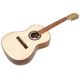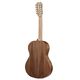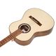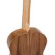 The finish is uneven, which gives the instrument a dirty look, and the wood choices are of course not premium and have a couple knots and discolorations. The sound hole was burned when drilled and has not been rounded off. Still, the walnut and wooden binding look great and at least on my sample there is no ripped wood on the body.