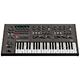 UDO Audio DMNO Black; analog-hybrid synthesizer with dual voice architecture; 8-voice polyphonic, 2 independent parts (DMNO 1 & DMNO 2) with 4 voices each; 44-keys Fatar keyboard with velocity sensitivity and aftertouch; controller section with assignable pitch bender, LFO, portamento and octave switch; 8 selectable play modes: Single, Dual, Split, One-Two, Cycle, Random, Chaos, Series; per part two FPGA-based digital super-waveform oscillators with 5 waveshapes (sine, sawtooth, square, triangle, pulse), noise generator and 6 alternative waveforms; analog stereo multi-core filter per voice (lowpass, highpass, bandpass, allpass and phaser) with parallel or serial signal routing; mixer with overdrive for oscillator 1, oscillator 2 and external audio signals; flexible modulation LFO with 10 waveforms; 3 ADSR envelopes with loop mode and multiple modulation destinations; programmable modulation matrix; arpeggiator and step sequencer with MIDI sync; Effects: reverb, delay, multi-mode distortion, chorus, 3-band equalizer; VFD display and four encoders for editing presets, voice settings, modulation matrix, effects, etc.; memory slots for 128 performances and 128 patches; stereo output (x2 6.3mm jack); stereo aux output (x2 6.3mm jack); stereo headphones output (6.3 mmjack); stereo input (x2 6.3mm jack); x2 CV outputs and x2 gate outputs (3.5mm jack); sustain, volume and expression pedal inputs (x3 6.3mm jack); MIDI in/out/thru (5-pin DIN); USB port; dimensions (WxDxH): 780 x 380 x 115 mm; weight: 8.5 kg; color: black