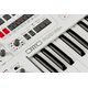 UDO Audio DMNO White; analog-hybrid synthesizer with dual voice architecture; 8-voice polyphonic, 2 independent parts (DMNO 1 & DMNO 2) with 4 voices each; 44-keys Fatar keyboard with velocity sensitivity and aftertouch; controller section with assignable pitch bender, LFO, portamento and octave switch; 8 selectable play modes: Single, Dual, Split, One-Two, Cycle, Random, Chaos, Series; per part two FPGA-based digital super-waveform oscillators with 5 waveshapes (sine, sawtooth, square, triangle, pulse), noise generator and 6 alternative waveforms; analog stereo multi-core filter per voice (lowpass, highpass, bandpass, allpass and phaser) with parallel or serial signal routing; mixer with overdrive for oscillator 1, oscillator 2 and external audio signals; flexible modulation LFO with 10 waveforms; 3 ADSR envelopes with loop mode and multiple modulation destinations; programmable modulation matrix; arpeggiator and step sequencer with MIDI sync; Effects: reverb, delay, multi-mode distortion, chorus, 3-band equalizer; VFD display and four encoders for editing presets, voice settings, modulation matrix, effects, etc.; memory slots for 128 performances and 128 patches; stereo output (x2 6.3mm jack); stereo aux output (x2 6.3mm jack); stereo headphones output (6.3 mmjack); stereo input (x2 6.3mm jack); x2 CV outputs and x2 gate outputs (3.5mm jack); sustain, volume and expression pedal inputs (x3 6.3mm jack); MIDI in/out/thru (5-pin DIN); USB port; dimensions (WxDxH): 780 x 380 x 115 mm; weight: 8.5 kg; color: white